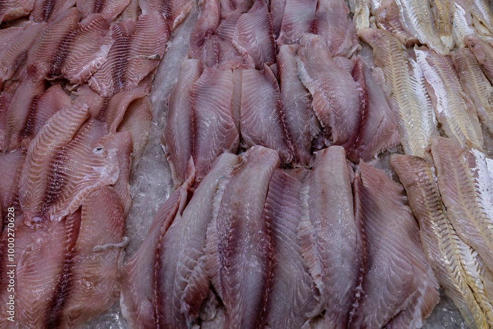 Fresh tilapia and saint peter fishs for sale at the market in Santos, Brazil