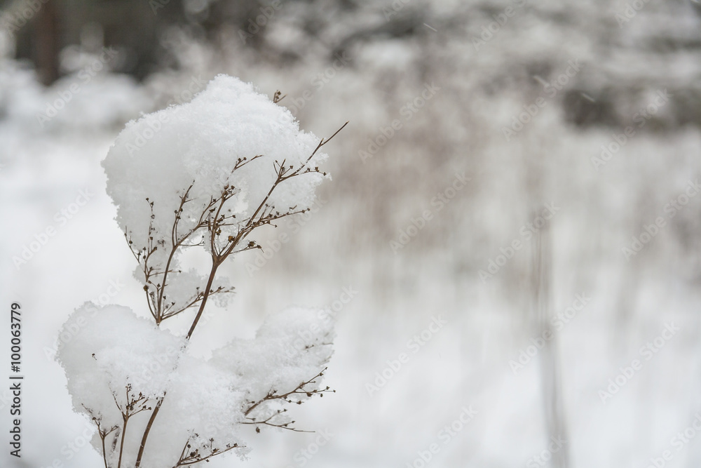 Branch covered with snow