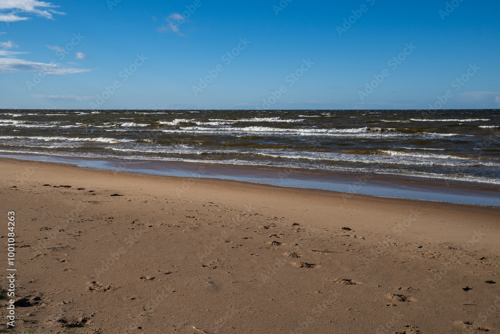 Natural landscape from the sea on a windy day. Beach on a sunny and windy day..