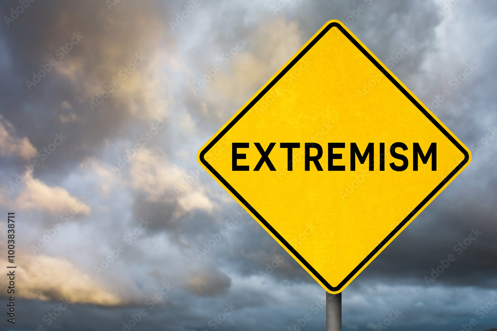 Conceptual Extremism Warning Sign Against Stormy Sky