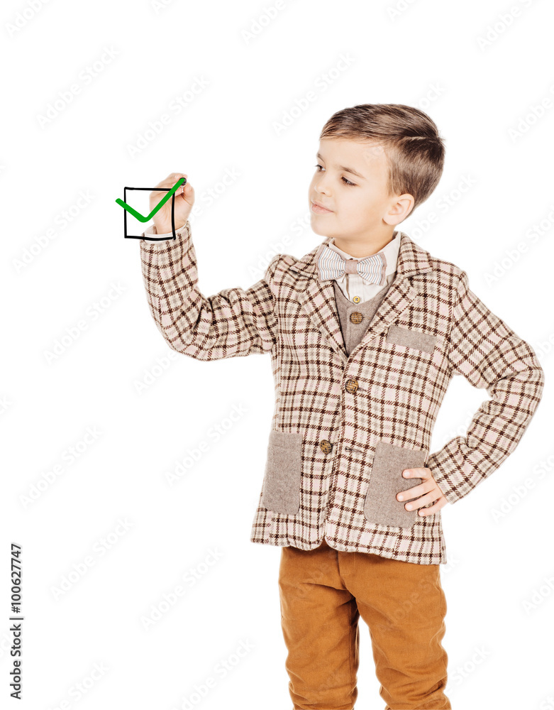 Portrait young boy with marker writing on a white background