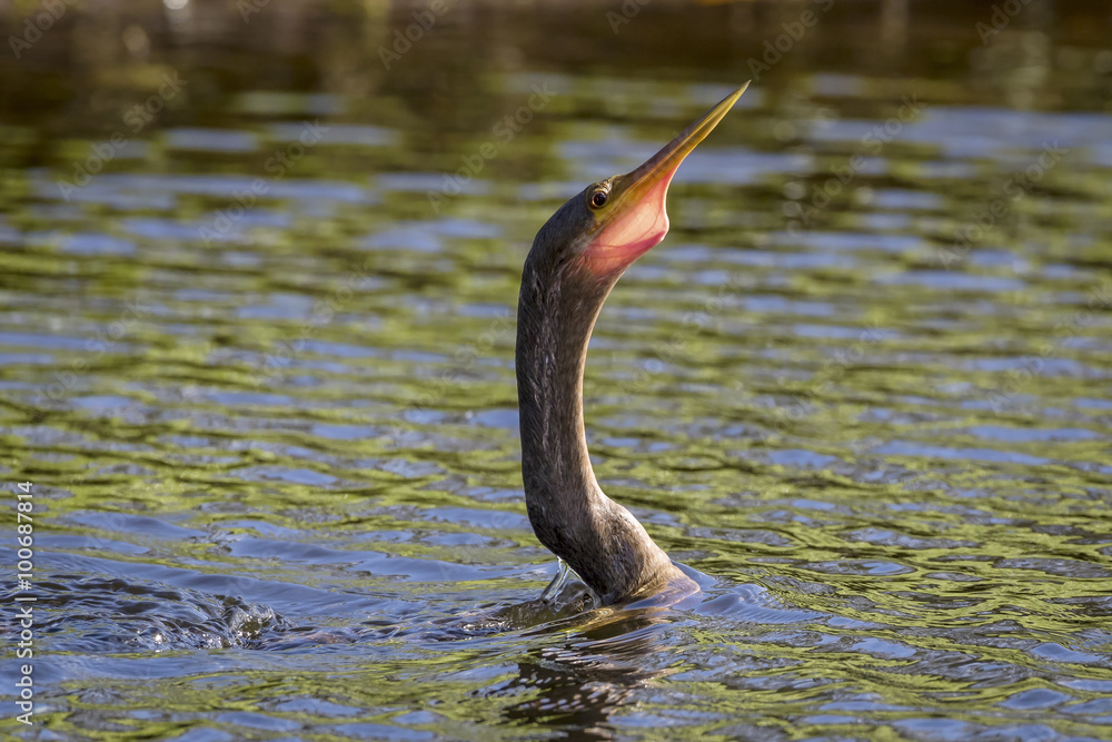 Anhinga Swimming in a Pond with its Throat Pouch Extended - Florida