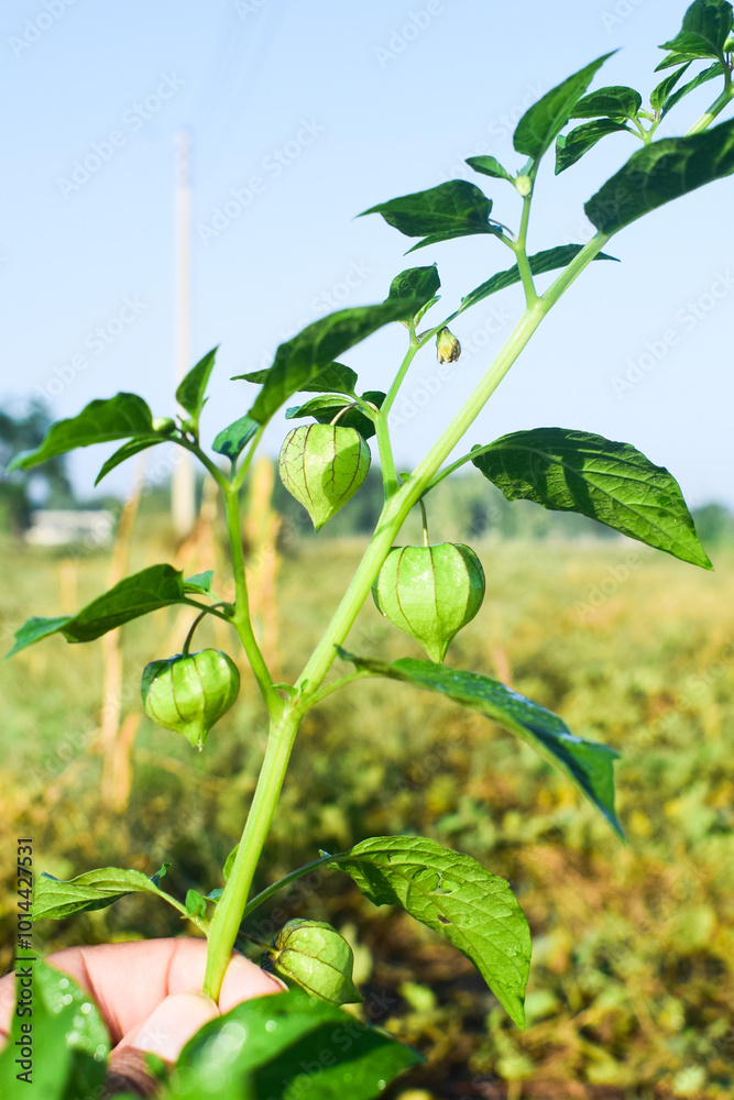 Physalis minima tree, Hogweed, Ground Cherry on tree, Pygmy ground cherry fruit. Scientific name Physalis angulata. macro shot on a sunny morning