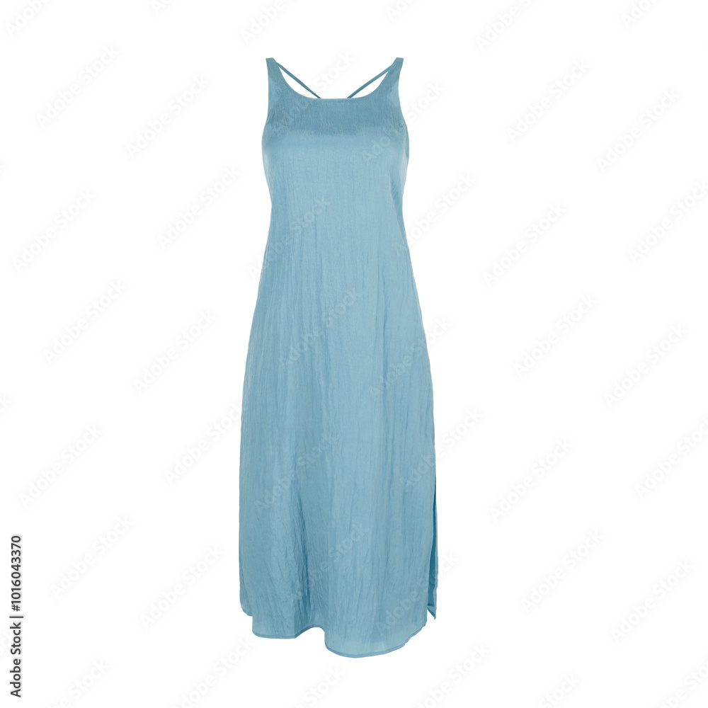 Blue women's sleeveless dress isolated on white background