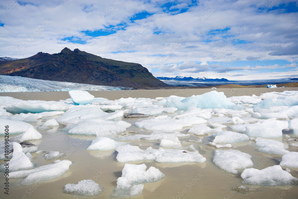 Icebergs on a glacier lake Fjallsárlón at the south end of the Icelandic glacier Vatnajökull