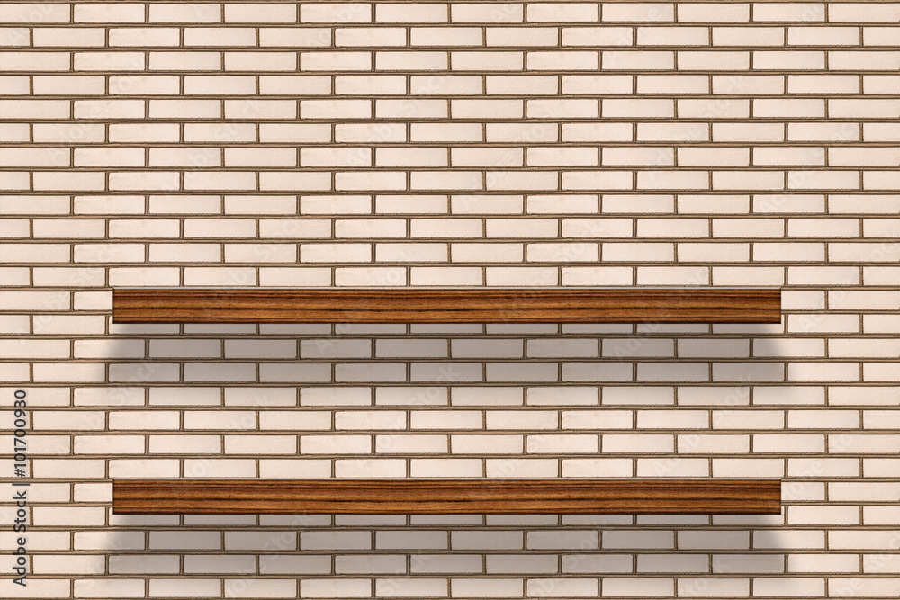 Wood shelf on brick background