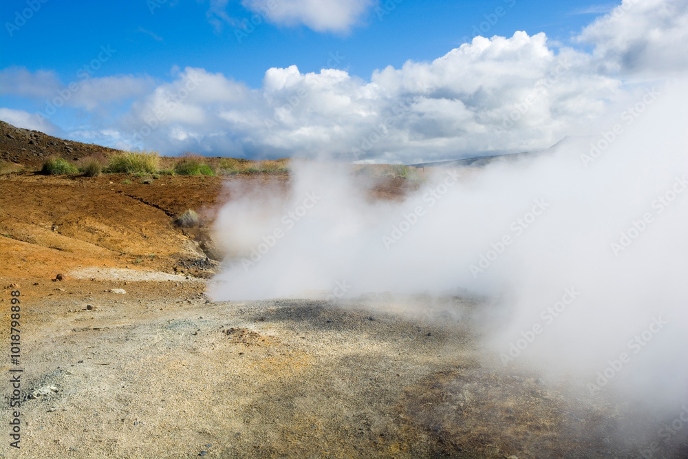 Seltún geothermal hot spring system in Krýsuvík volcanic area, in southwest Iceland on the Mid-Atlantic Ridge of the Reykjanes peninsula