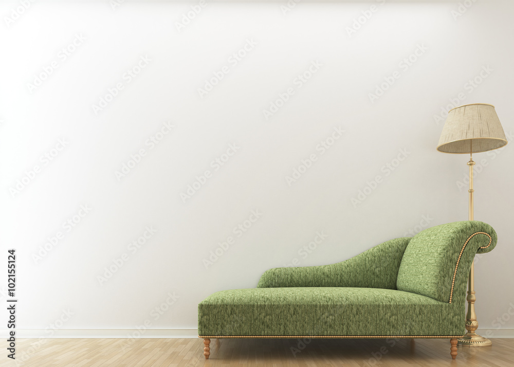 Vintage sofa with lamp in empty room