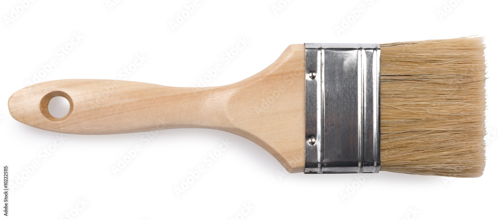 Construction brush with wooden handle on white background
