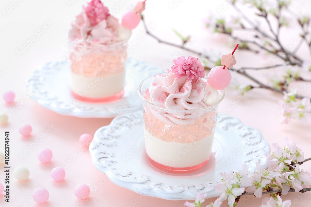 春のお花見スイーツさくらのヴェリーヌ さくらのグラスデザート