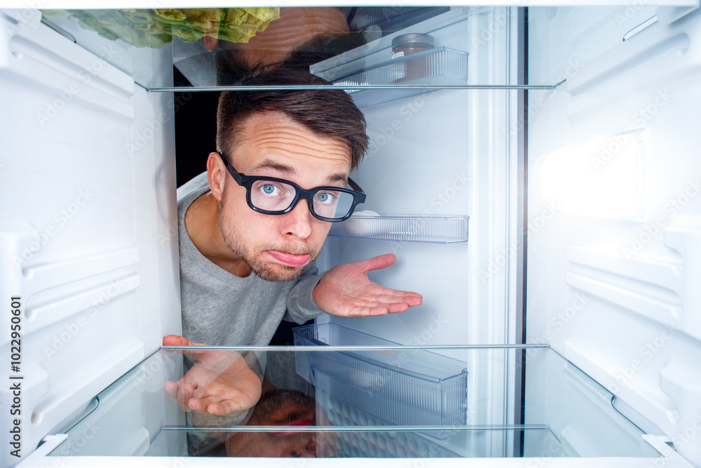Man Disappointed by Empty Fridge