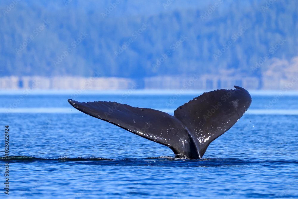 the tail of a diving humpback whale off the coast of Vancouver Island