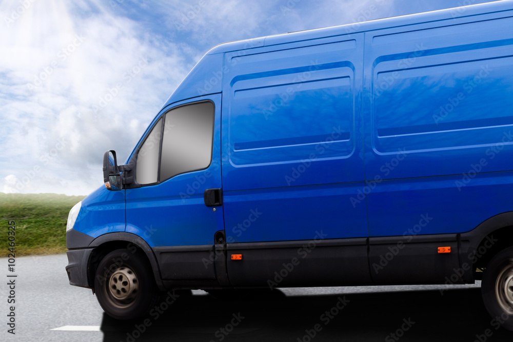 blauer Transporter auf der Landsraße