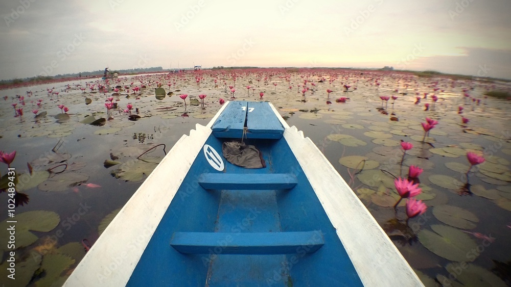 Wooden boat in Lotus Lake