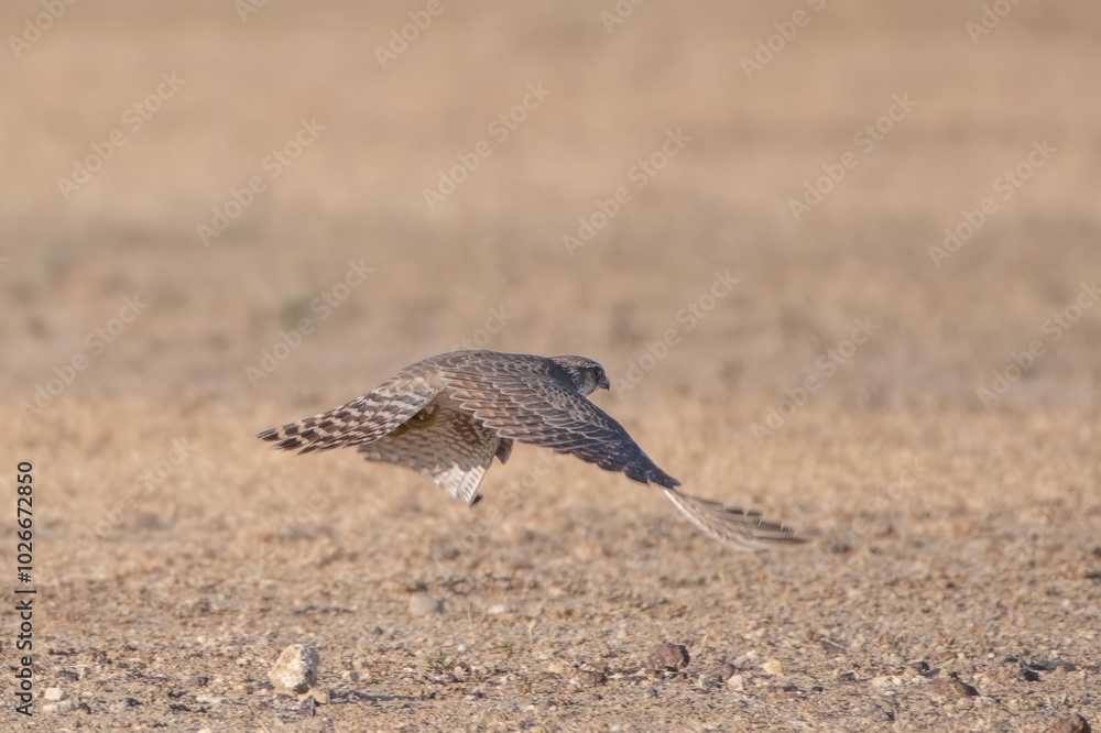 merlin (Falco columbarius), a small species of falcon from the Northern Hemisphere at Desert National Park in Rajasthan, India