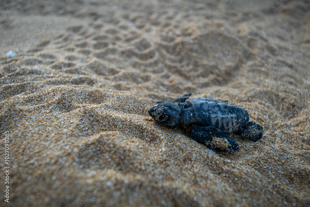 Newborn Turtle Heading for the Ocean
