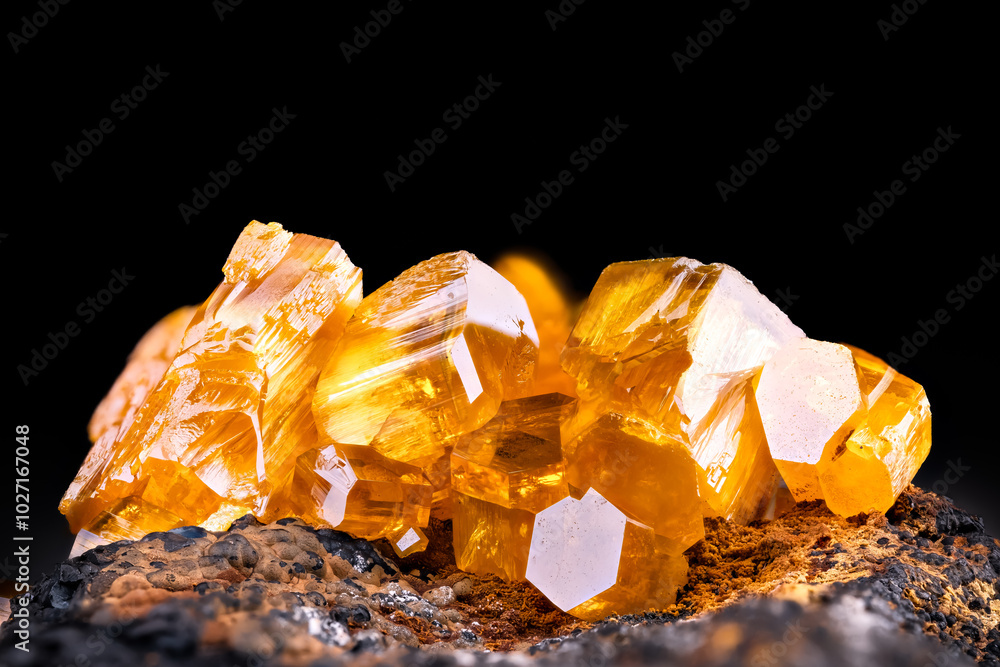 Orange Mimetite. specimen from Pingtouling Mine, Liannan County, Qingyuan, Guangdong Province, China. macro photography detail texture background. close-up mineral crystal unpolished gemstone