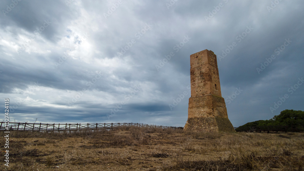 Antigua torre vigía llamada de torre ladrones en las dunas de Artola, Marbella