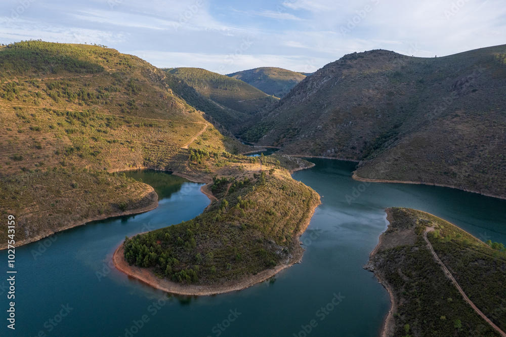 Portugal. Drone vision, aerial view of Serpente do Medal, Sabor River, tourist attraction and travel destination in Northern Portugal.
