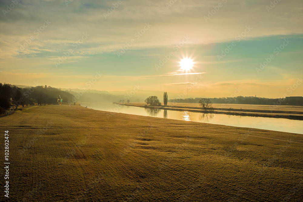 Sonnenaufgang Dresden an der Elbe