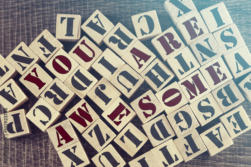 You Are Awesome message formed with wooden blocks