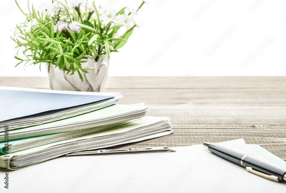 Office desk with blank paper.