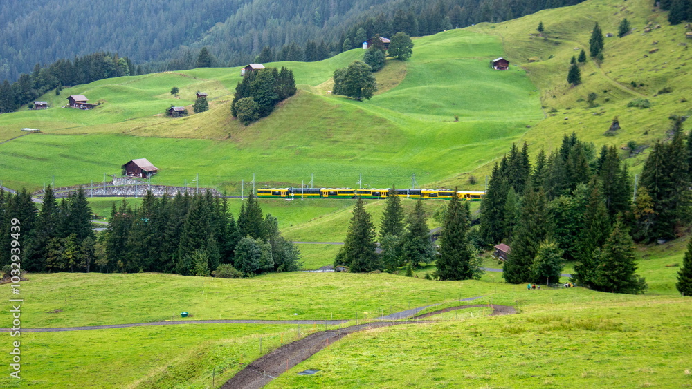 クライネシャイデックからヴェンゲンへのトレッキング ヴェンゲルンアルプ鉄道がある景色ヴェンゲン グリンデルワルト スイス