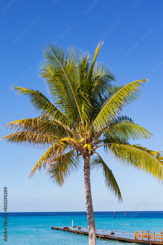 A coconut palm tree on Grand Turk, Turks and Caicos, British West Indies in the Caribbean.