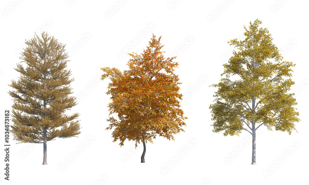 Tamarack Common Oak Paper Birch png alpha chanel tree set