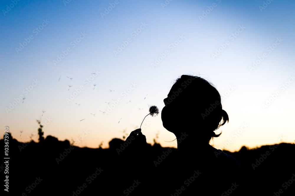 Woman blowing dandelion silhouette