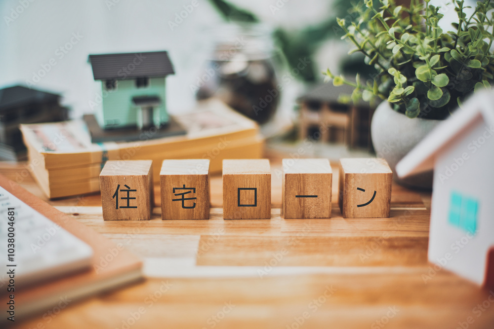 住宅ローンの文字と不動産ビジネスイメージ