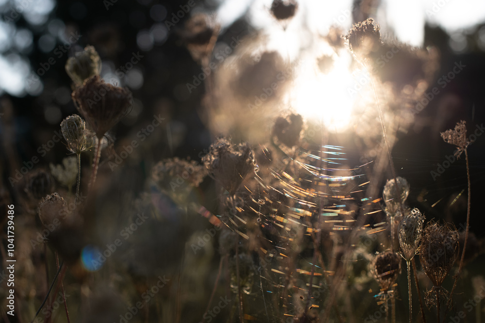 Autumn Moment, Sunny September morning, spider web in der sun, close-up