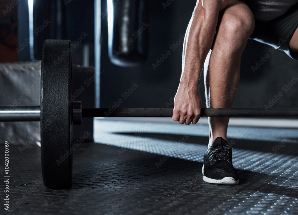 Gym, hands and person with barbell for workout, stability and balance with fitness for muscle strength. Closeup, male trainer and bodybuilder with weightlifting for wellness, healthy body or training