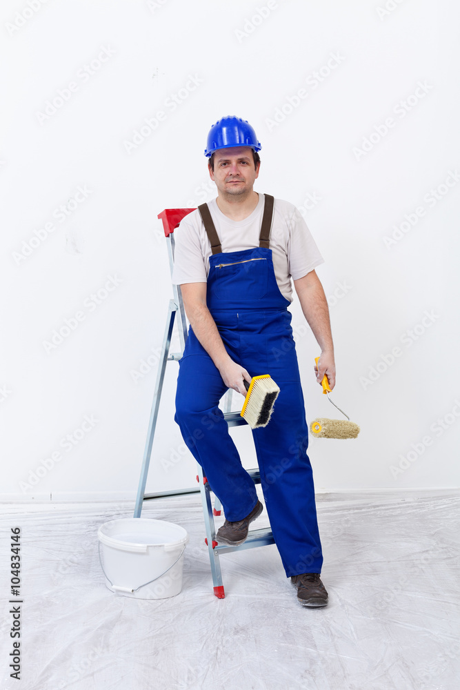 Worker with painting utensils