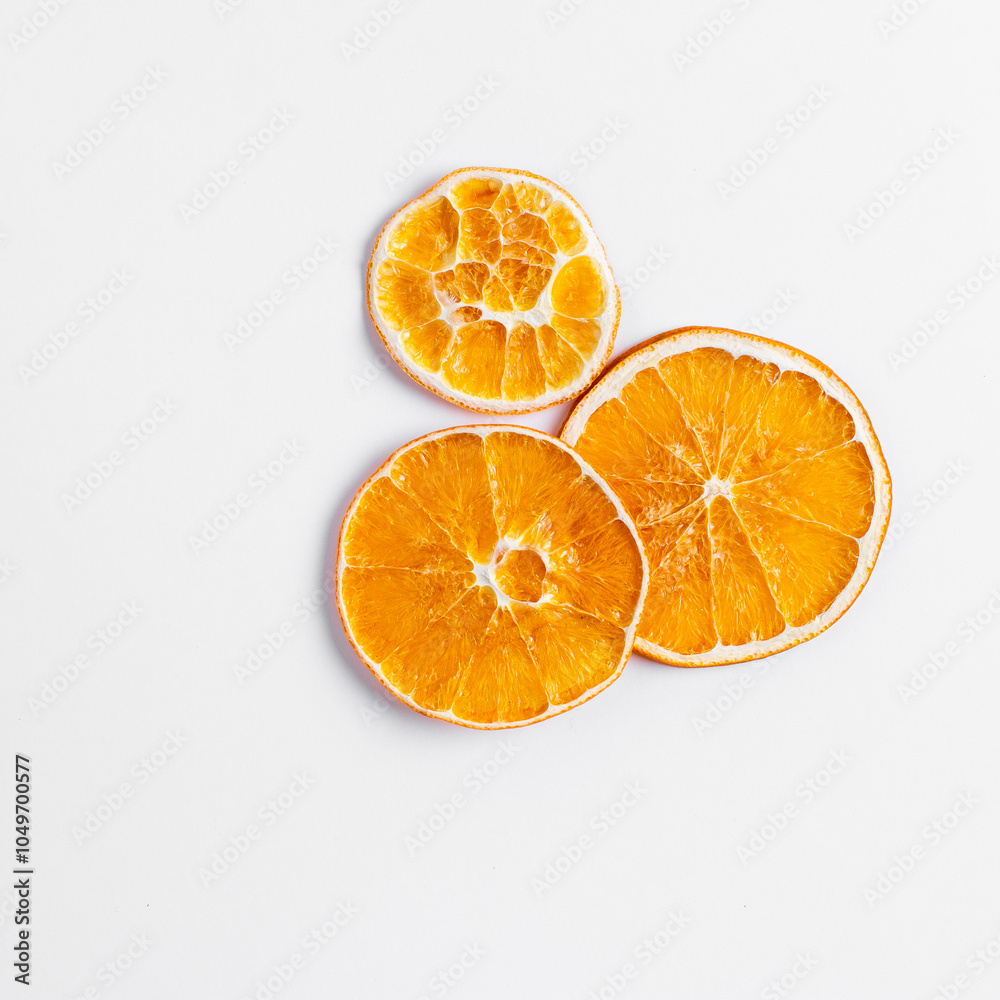 Dried orange slices isolated on white