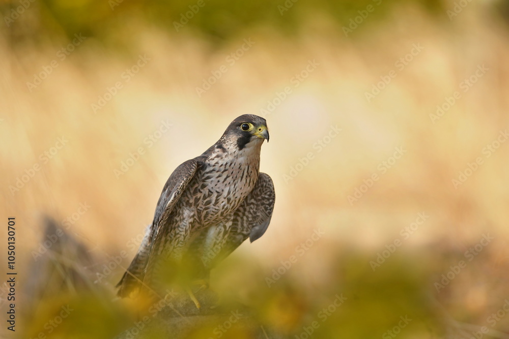 A peregrine falcon sits on rock. Falco peregrinus in the nature habitat. nests in the national park czech switzerland