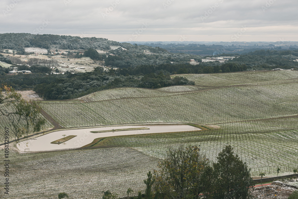 parreiras de uva na neve em flores da cunha, serra gaucha