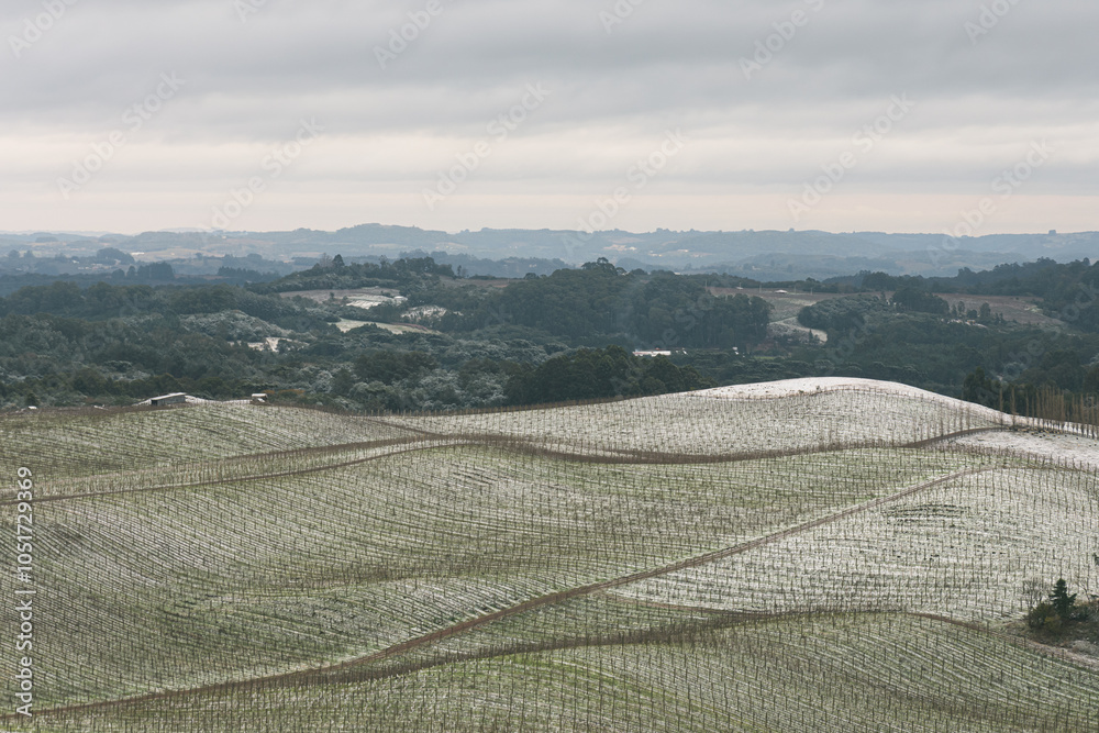 parreiras de uva na neve em flores da cunha, serra gaucha