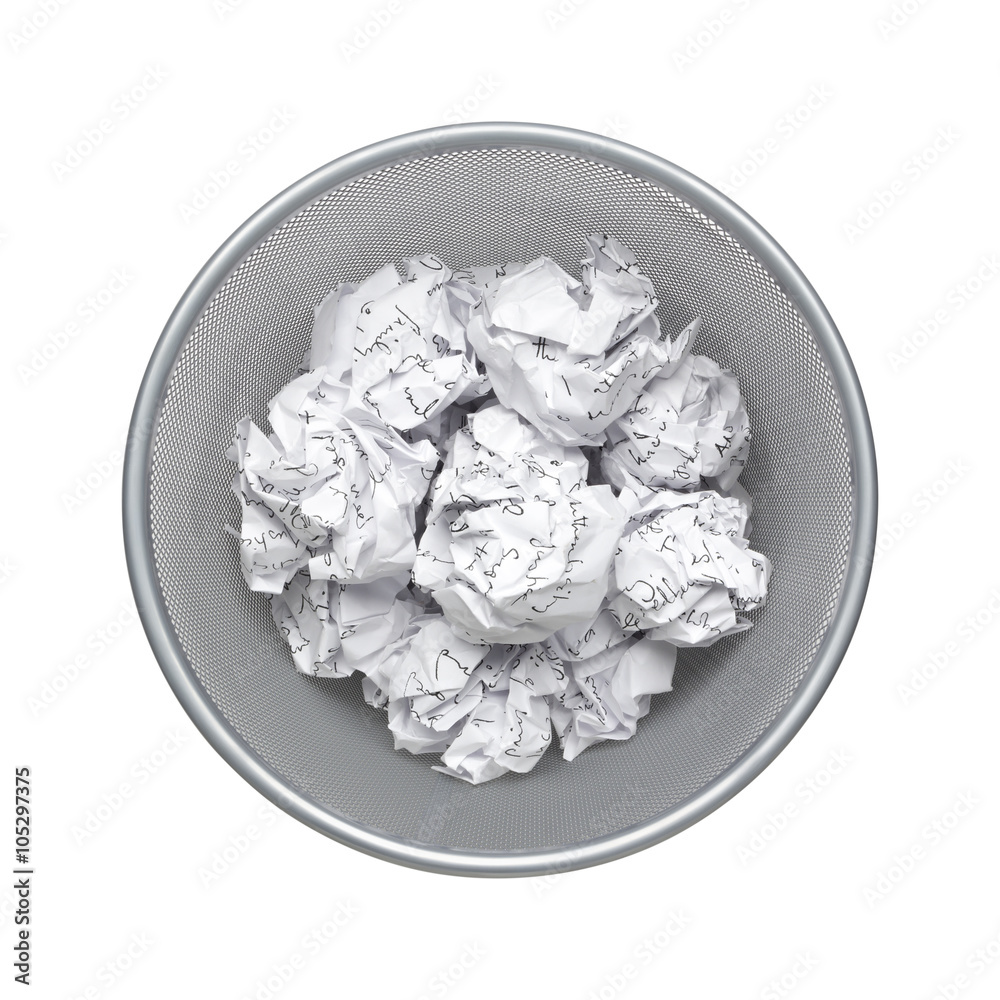 top view, Crumpled paper, garbage, waste, Junk, wastepaper in office bin, rubbish, trash