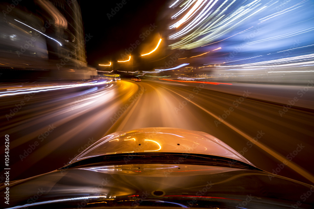 Night city drive by car