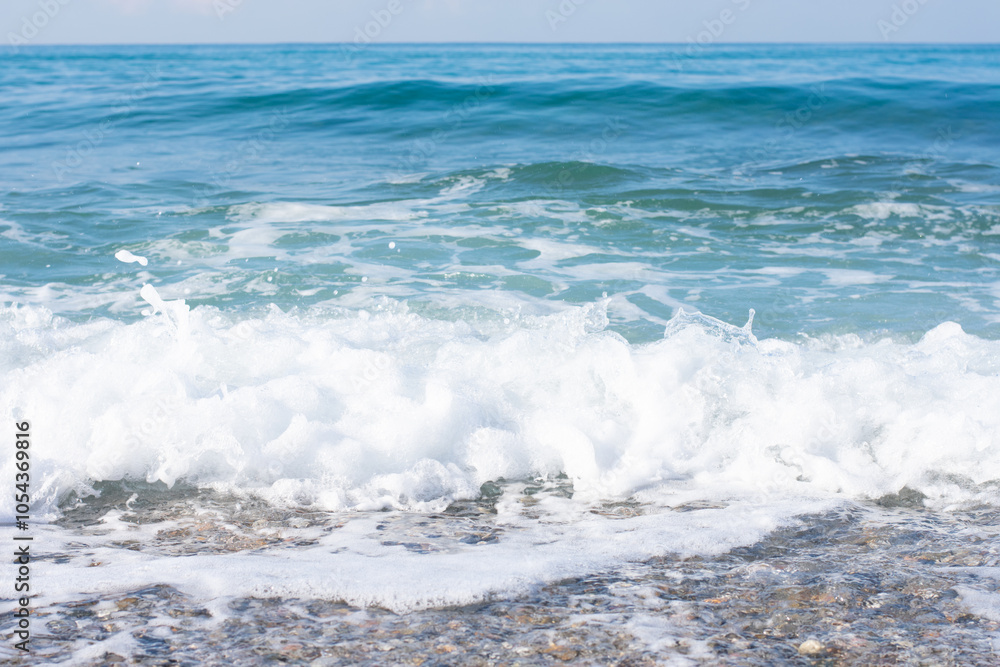 Natural background with oceanside sea waves with ащфь.Shore with copy space,tourism,vacation