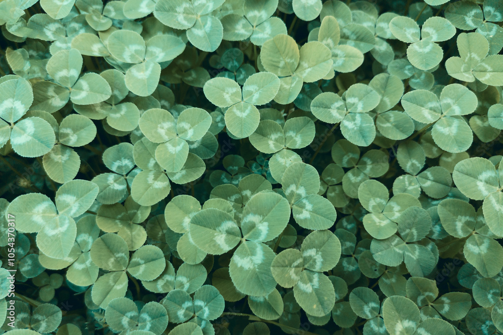 Botanical natural grass background with green clover trefoil leaves, copy space.Pattern for Saint Patrick's Day party design