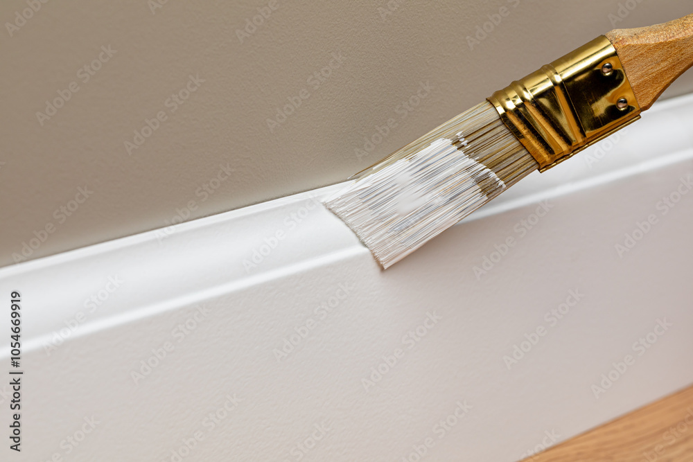 Painting baseboard trim with white paint. Home improvement, remodeling and repair concept.