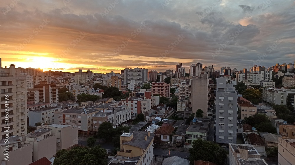 porto alegre rs vista aérea do pôr do sol com cidade ao fundo no rio grande do sul