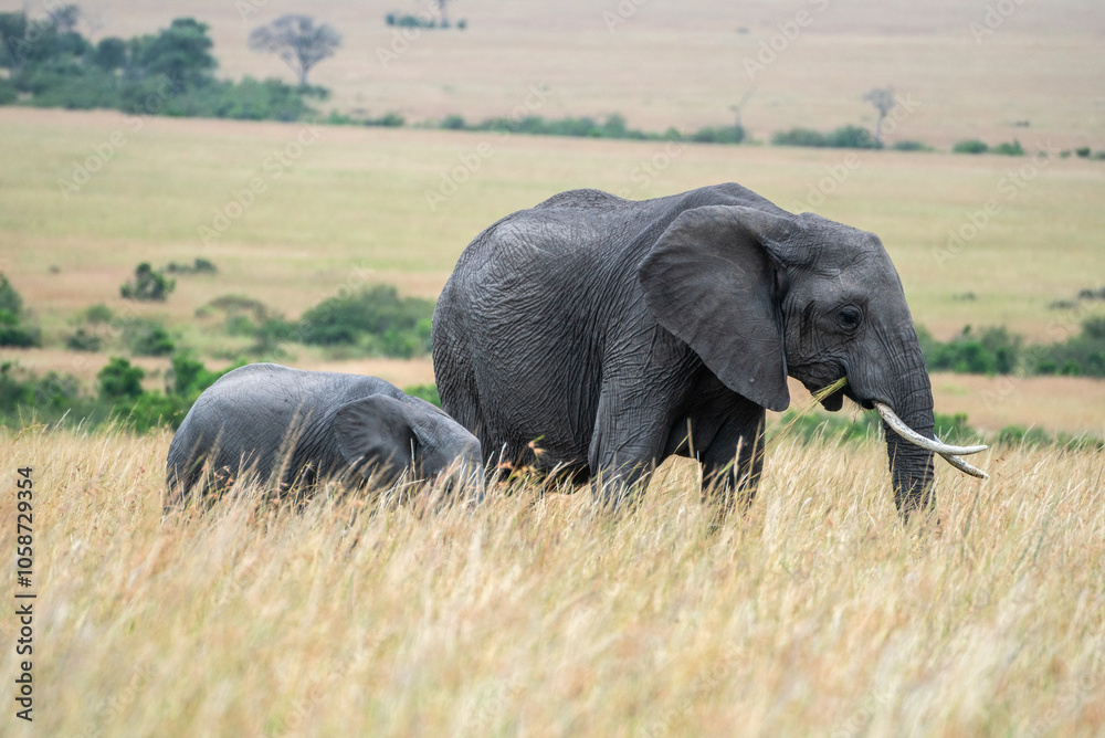 Big elephants in their habitat in Africa, Masai Mara Reserve, Kenya