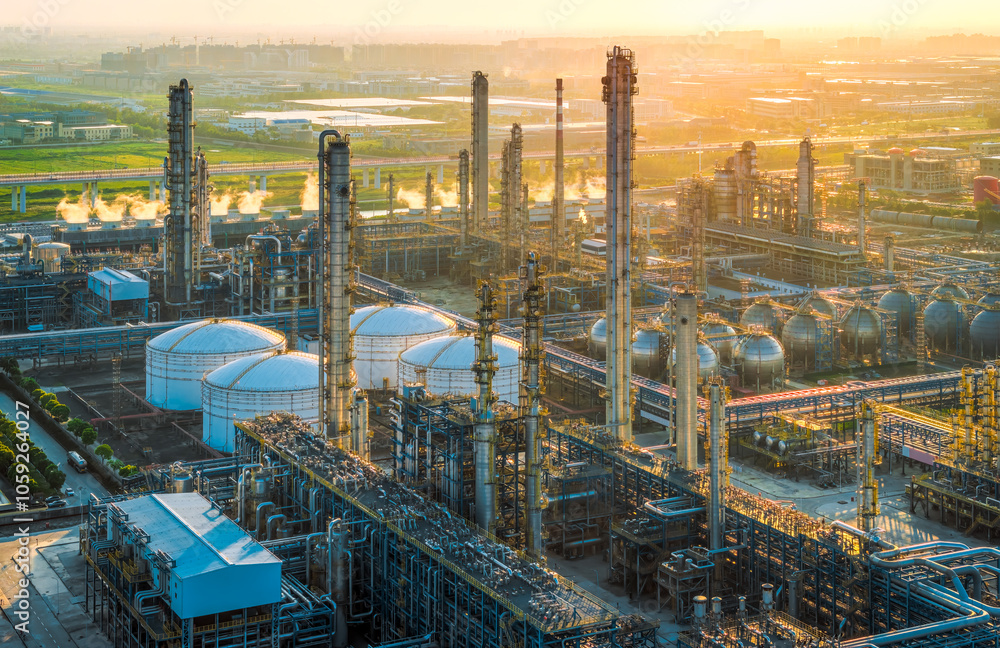 Refinery and chemical plant at sunset. Business Finance and Industry