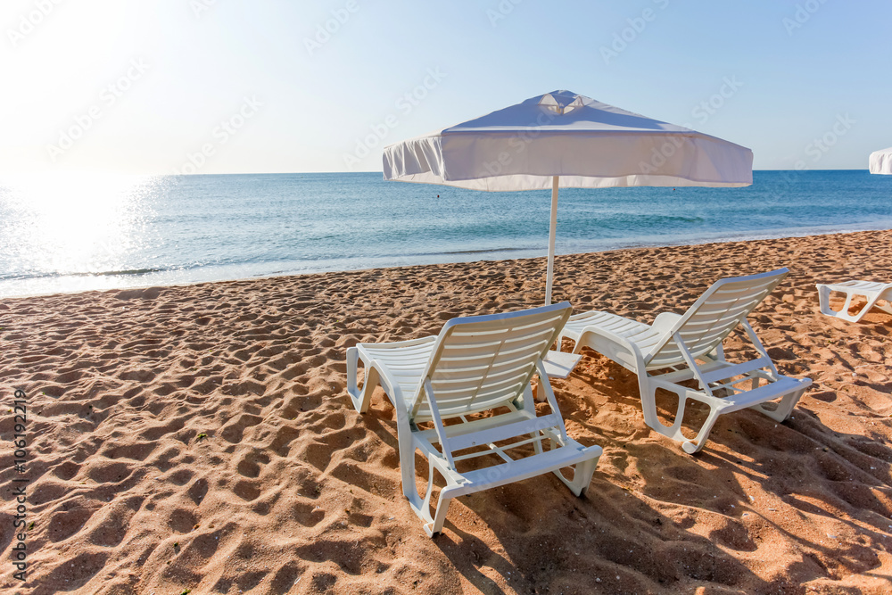 Hotel facade balconies with pool in Golden Beach, Bulgary