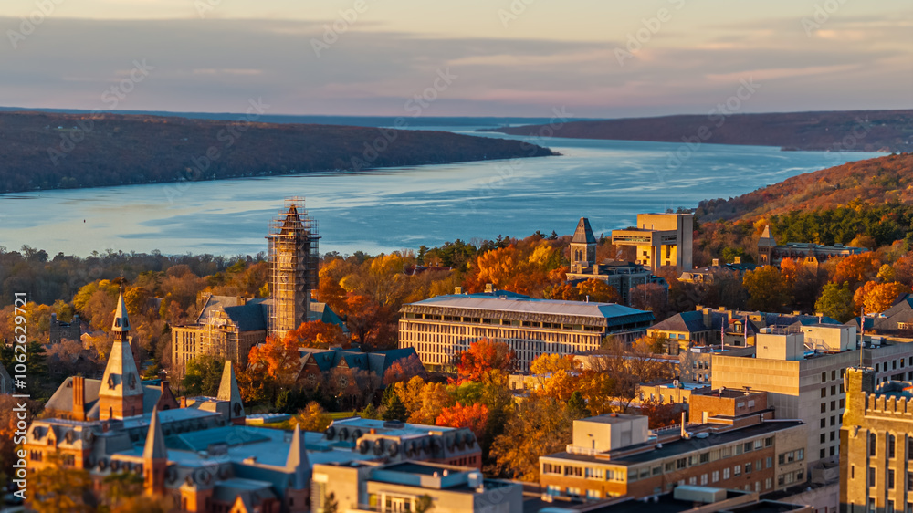 Afternoon aerial autumn image of the area surrounding the City of Ithaca, NY, USA 11-03-2024