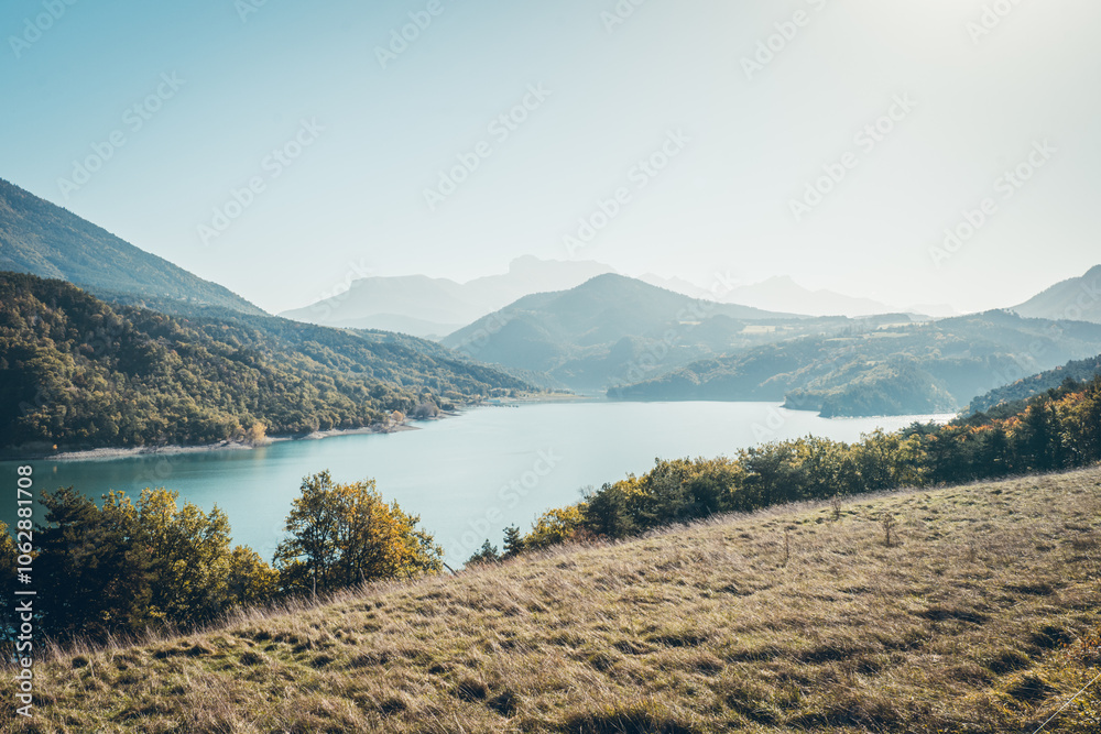Hiking in autumn and discovery of the landscape of the Drac Himalayan footbridge, in Isère and the Auvergne-Rhône-Alpes region in France