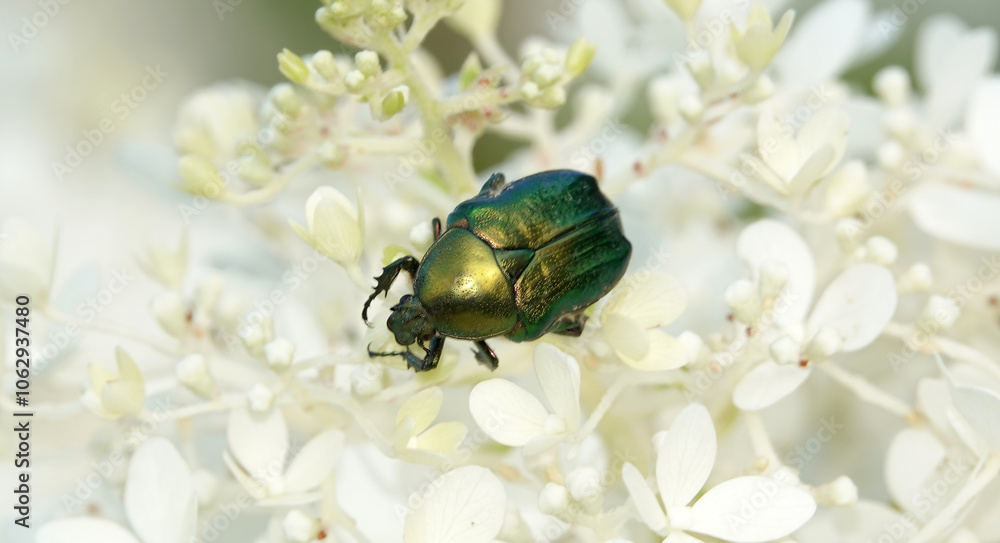 Golden Bronze Beetle on Japanese Spiraea Flower